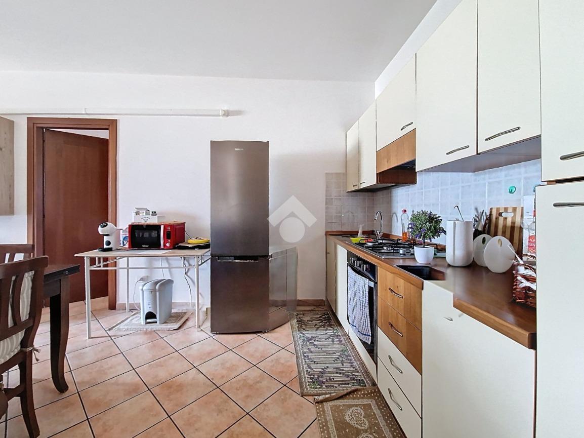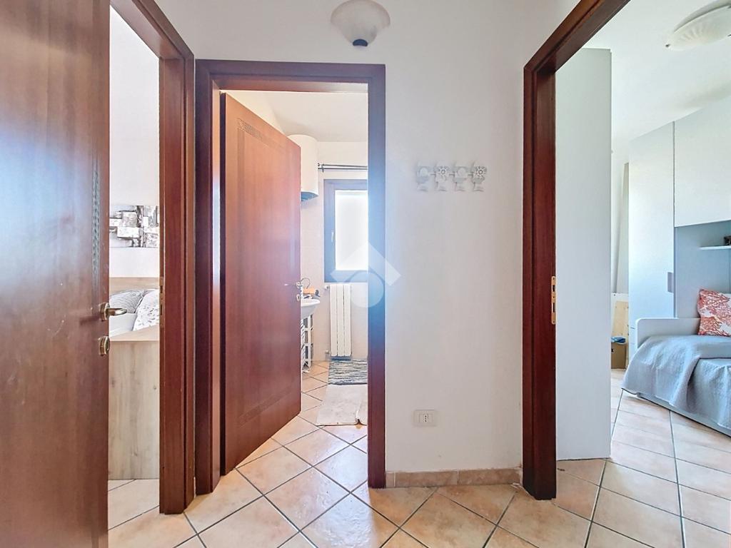 L’appartamento offre spazi luminosi e ben organizzati: soggiorno con cucina a vista in open space e accesso diretto al balcone panoramico, camera matrimoniale anch’essa collegata al balcone, camera singola dotata di doppia armadiatura e bagno finestrato.