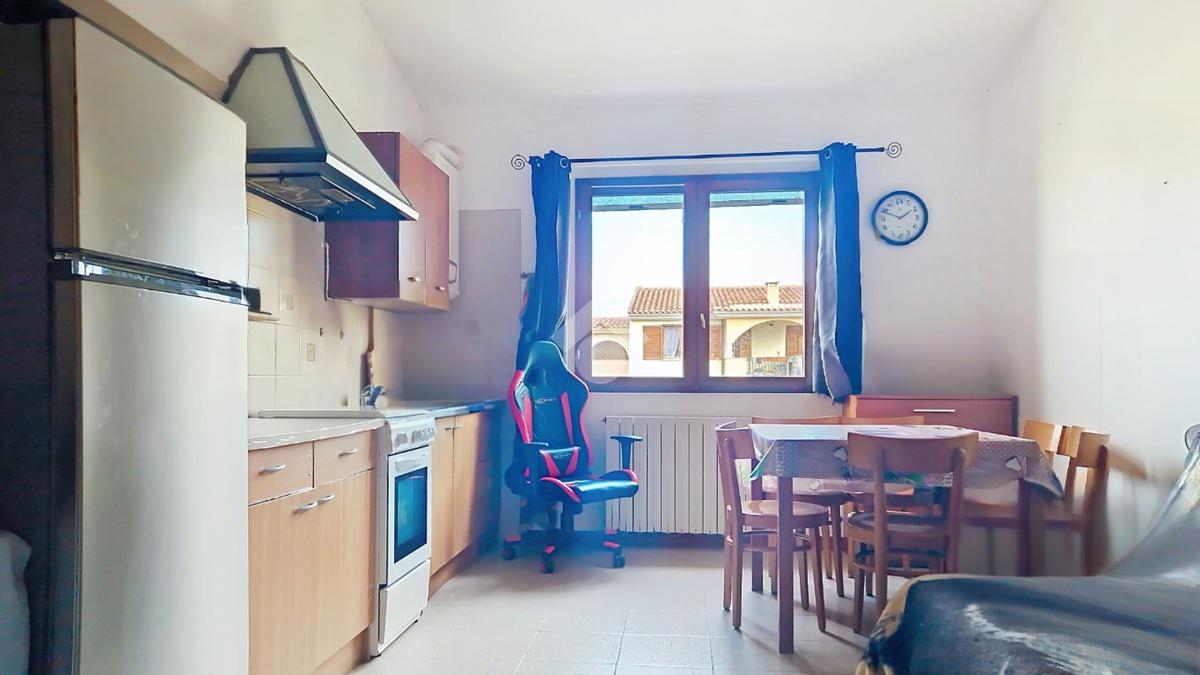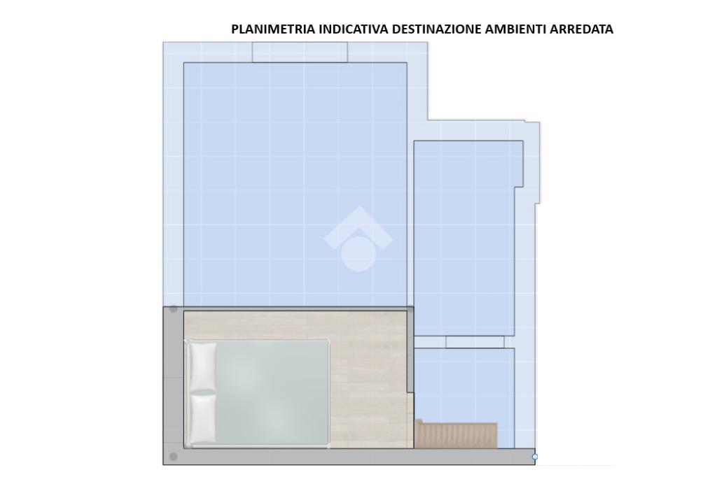 L’ingresso apre su una zona giorno luminosa e ben distribuita, con angolo cottura e area living; il soppalco già adibito a zona notte permette di sfruttare al meglio gli spazi e dona all’ambiente una piacevole sensazione di ordine e funzionalità.