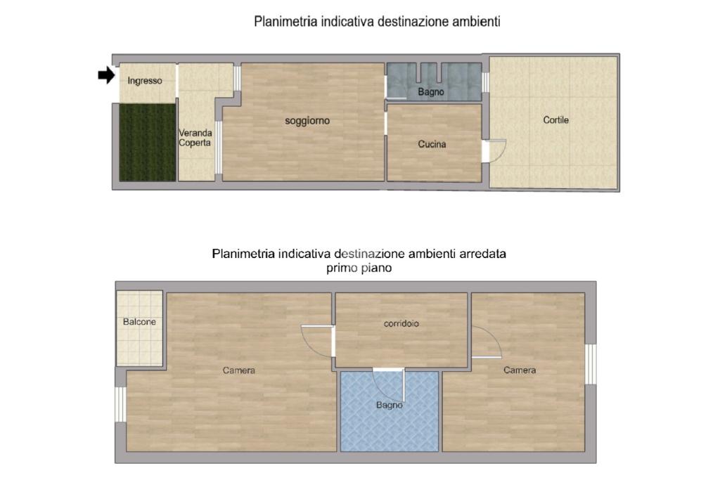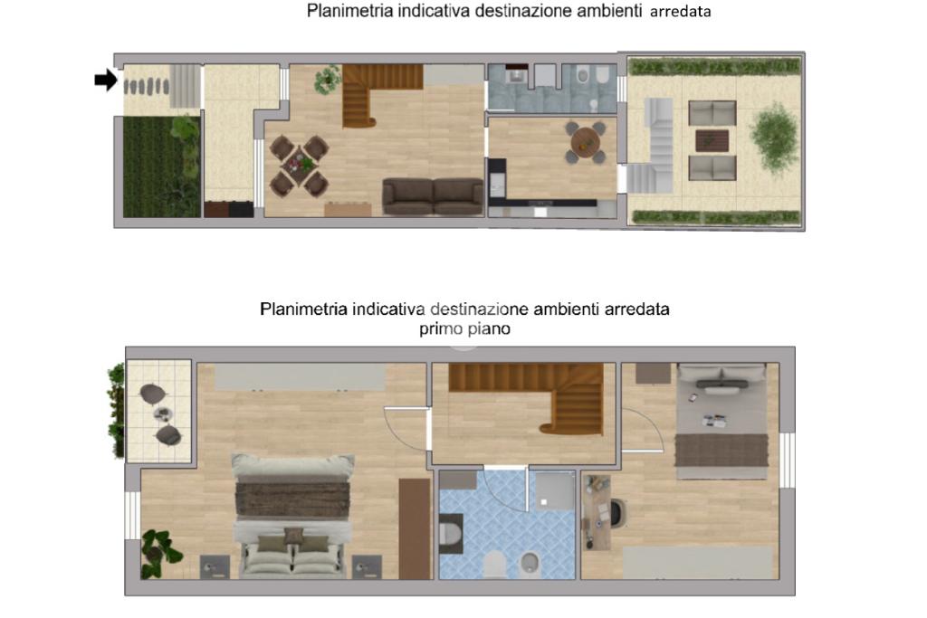 L’immobile si sviluppa su due piani e si caratterizza per la buona distribuzione degli ambienti e per la presenza di piacevoli spazi esterni. Al piano principale troviamo la zona giorno composta da soggiorno e cucina separata, ambienti funzionali e ben organizzati per la vita quotidiana.